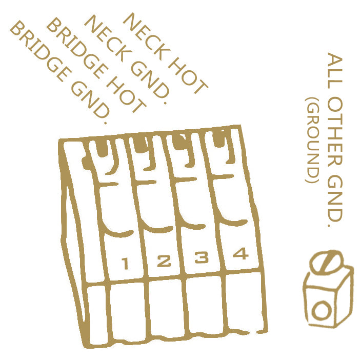 • Strip pickup and ground wire insulation leaving 6mm (1/4”) of bare wire.