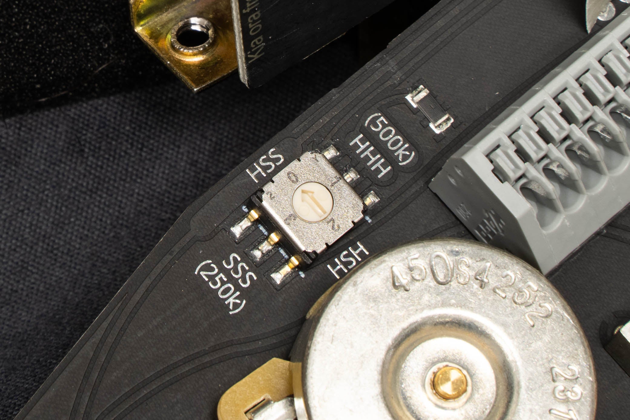 • SSS / 250k  For three single coils or most single coil sized humbuckers