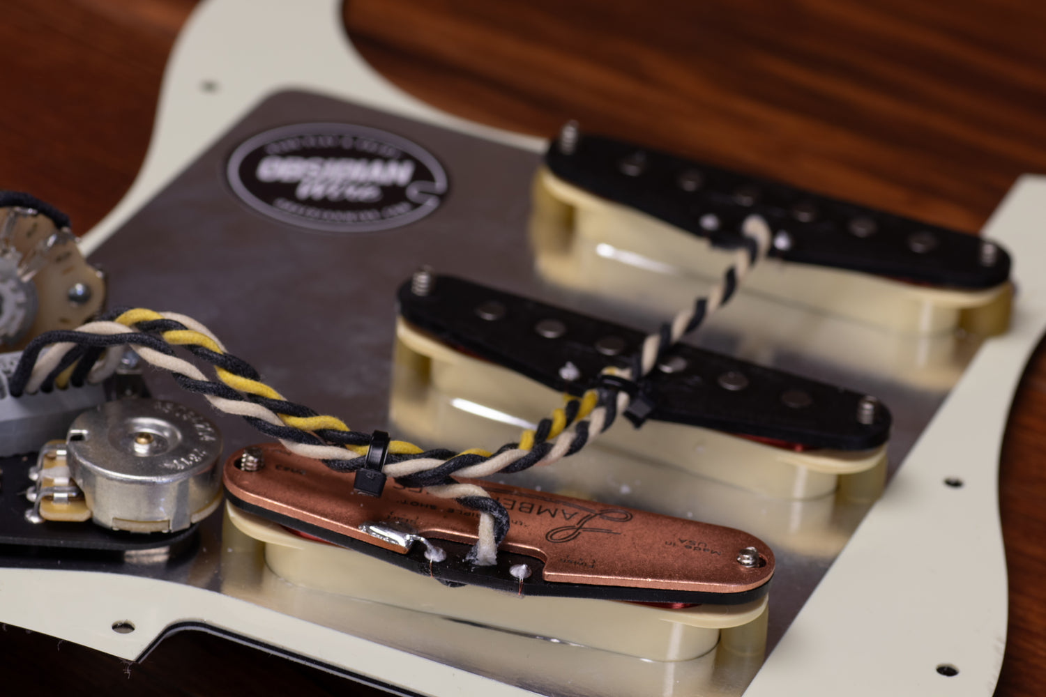 Choose Your ObsidianWire Pro-Grade Pro-Wired Electronics, along with your choice of pickups, pickguards and knobs.